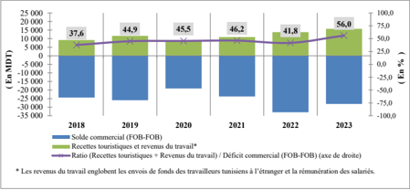 | Figure 5 : Evolution du taux de couverture du déficit commercial (FOB-FOB) par les recettes touristiques et les revenus du travail | 24 |