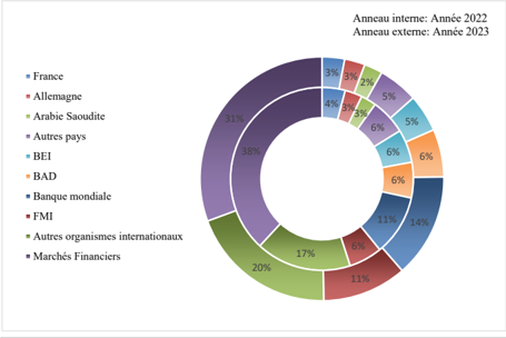 | Figure 28 : Répartition géographique des intérêts de la dette à LT 2022-2023 | 65 |